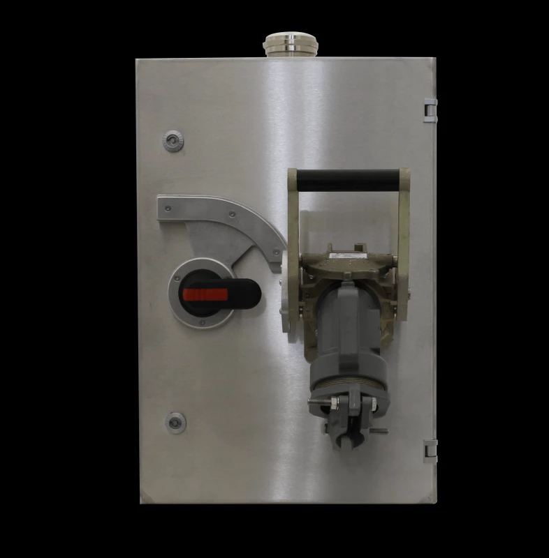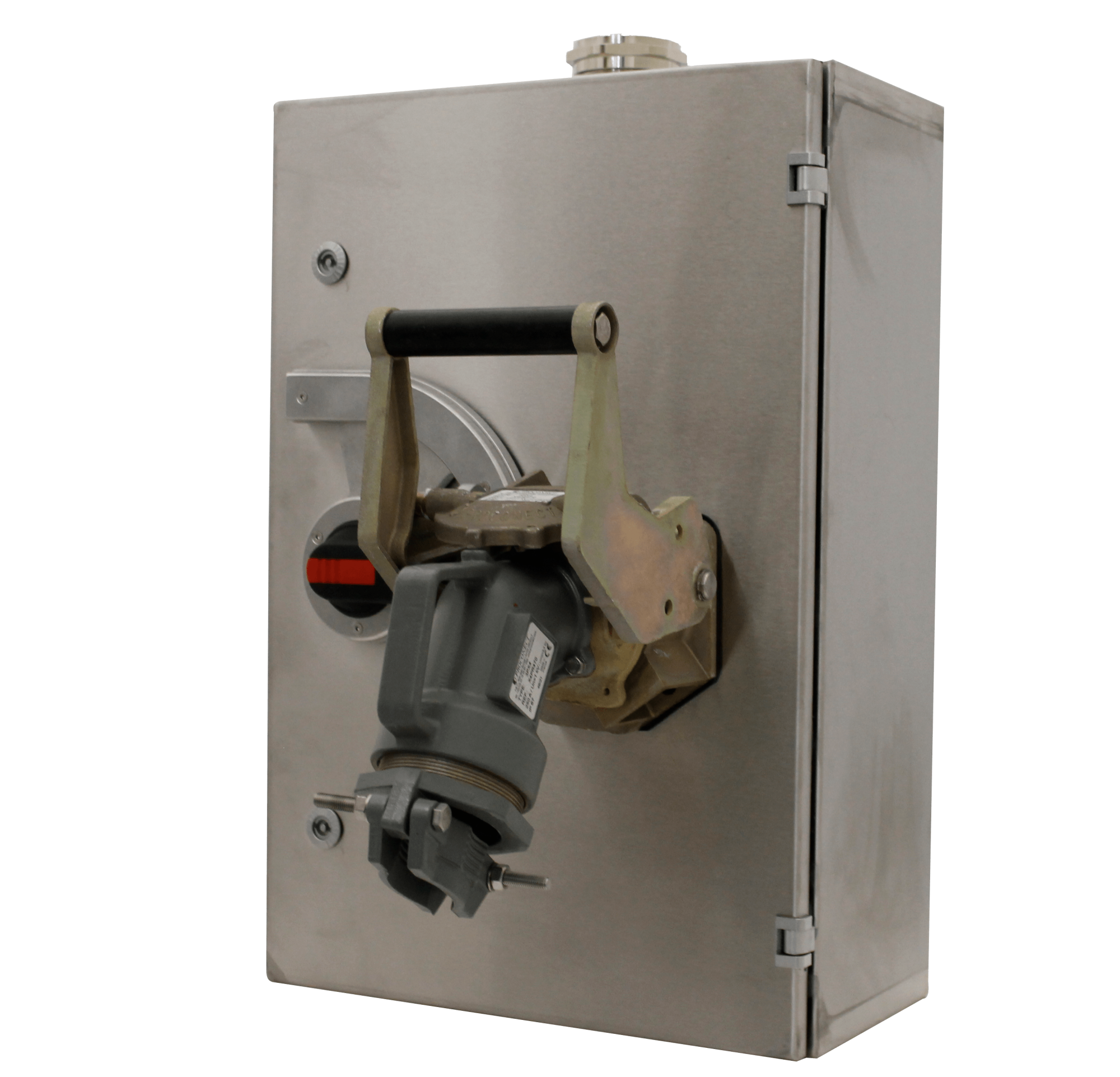 Настенный силовой шкаф с розеткой с блокировкой EC-MSI-X4DE395. Рассчитан на ток 250 Ампер и контактную группу 3P+E+2p. Рекомендуется использовать при напряжении электрического тока до 3,3 кВ. Степень защиты соответствует стандарту IP66.