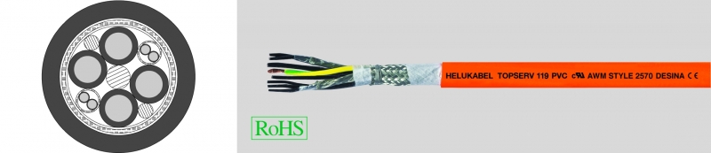 Характеристики — TOPSERV® 119, Indramat Standard INK, высокогибкий сервокабель для буксируемых цепей, PUR-оболочка, 0,6/1kВ, с разметкой метража